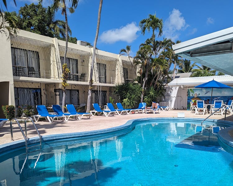 At Pirate's Inn we offer you the warmest Caribbean welcome. Enjoy a delightful experience in apartment hotel accommodation! You'll love our authentic decor, spacious rooms and full-sized pool, as well as our colorful landscape with palm trees and tropical flowers throughout the property. Relax by the pool and simply unwind and watch the world go by.