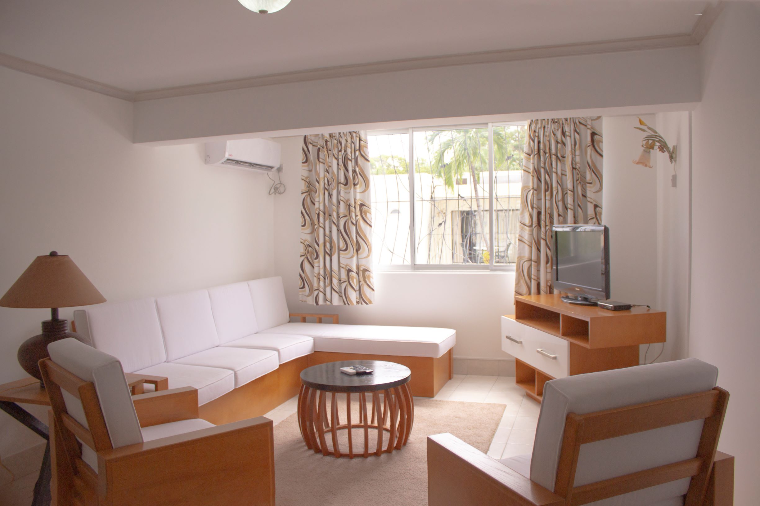 Our standard studio with is on the first floor of the hotel and features larger room areas with no patio or balcony. Some rooms have full views of our central pool. All feature large picture windows. Rooms are fully air conditioned with kitchenette and en suite bathroom and include daily housekeeping service, water, gas, electricity, cable TV, safety deposit boxes. Cribs (infant beds) available.